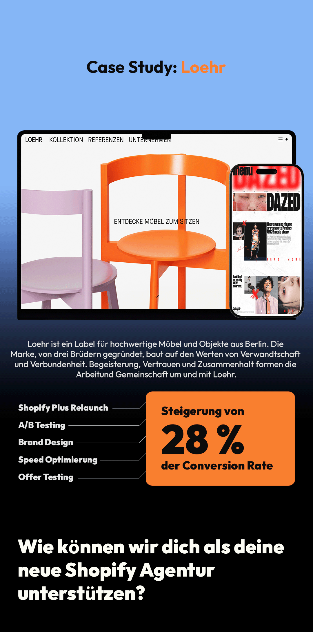 Shopify Setup und Migration. Onlineshop Relaunch. Optimierung und A/B Testing.